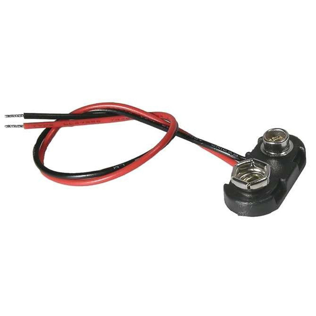 9V Battery Clip provides excellent mechanical strength and low contact resistance. Wire leads (red and black) are tinned for increased reliability and the ends are stripped for easy connection.